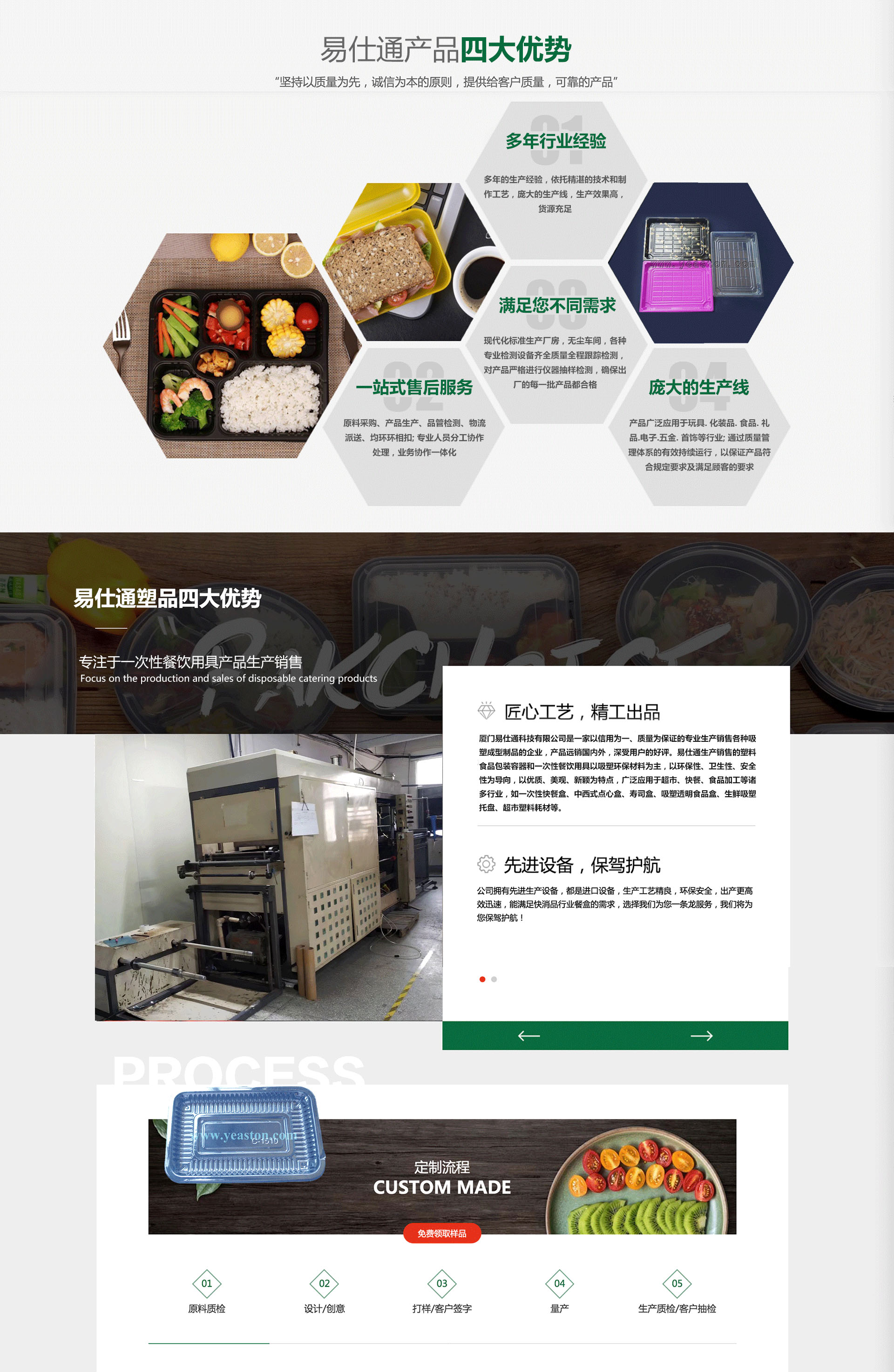 廈門易仕通科技有限公司是一家以信用為基礎(chǔ),生產(chǎn)銷售各種吸塑包裝制品的吸塑廠,產(chǎn)品遠(yuǎn)銷國內(nèi)外,深受用戶的好評(píng)。公司成立于2007年,擁有先進(jìn)的現(xiàn)代化成套吸塑生產(chǎn)設(shè)備和檢測(cè)儀器、擁有不斷創(chuàng)新的吸塑技術(shù)隊(duì)伍和誠信為本的經(jīng)營理念,為廣大客戶提供吸塑制品和熱情周到的服務(wù)。